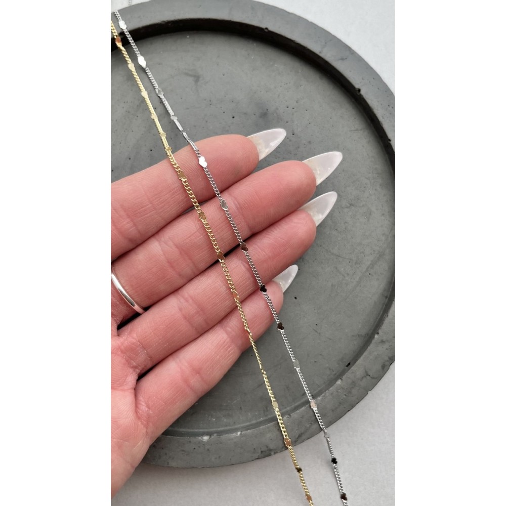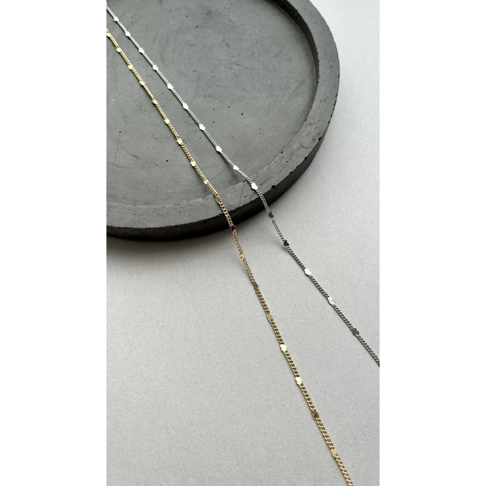 Цепь тонкая плоская с пайетками в форме сердец